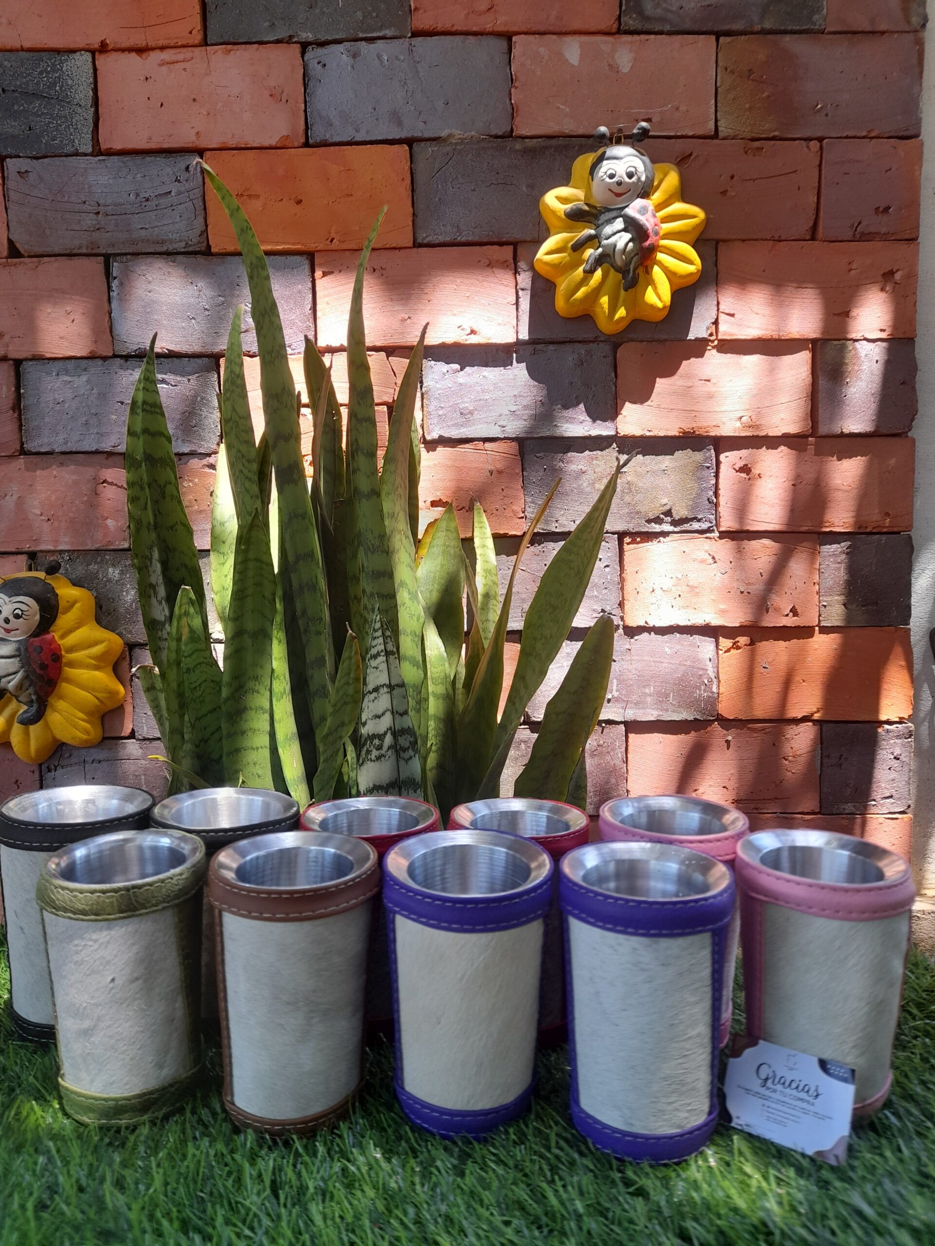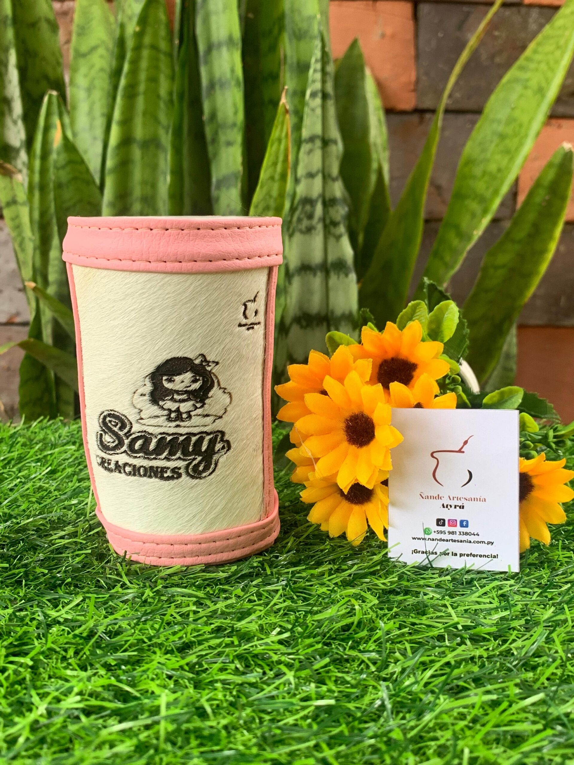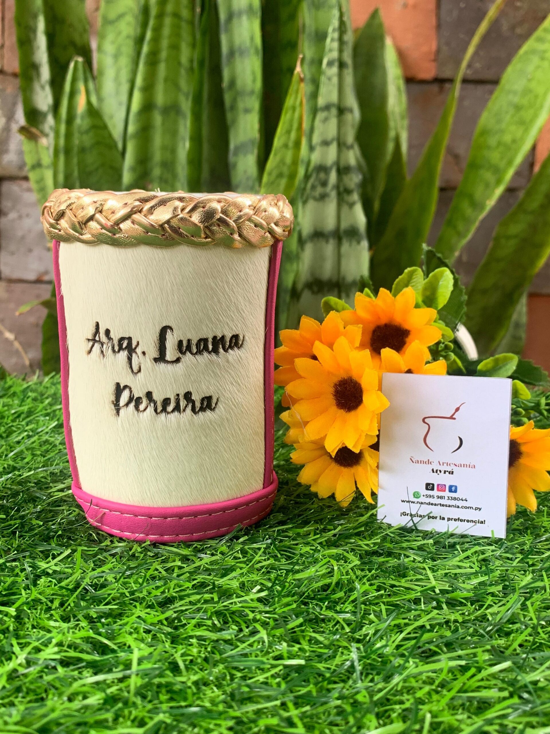 Revestido en cuerina con pelo en cuero /personalizado en grabado