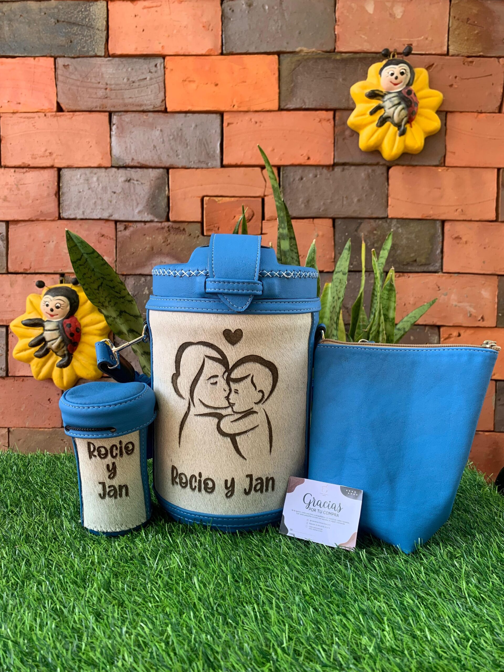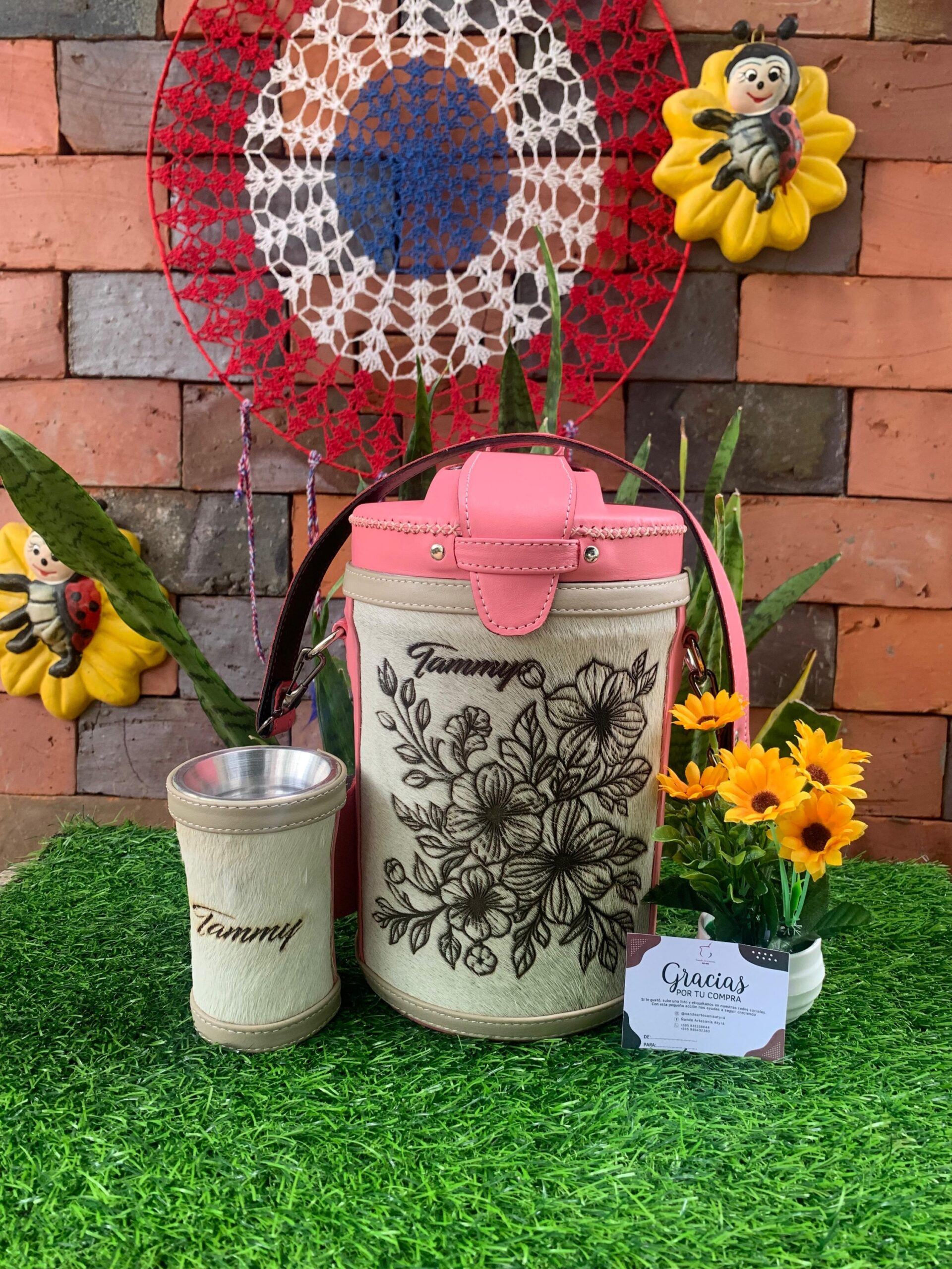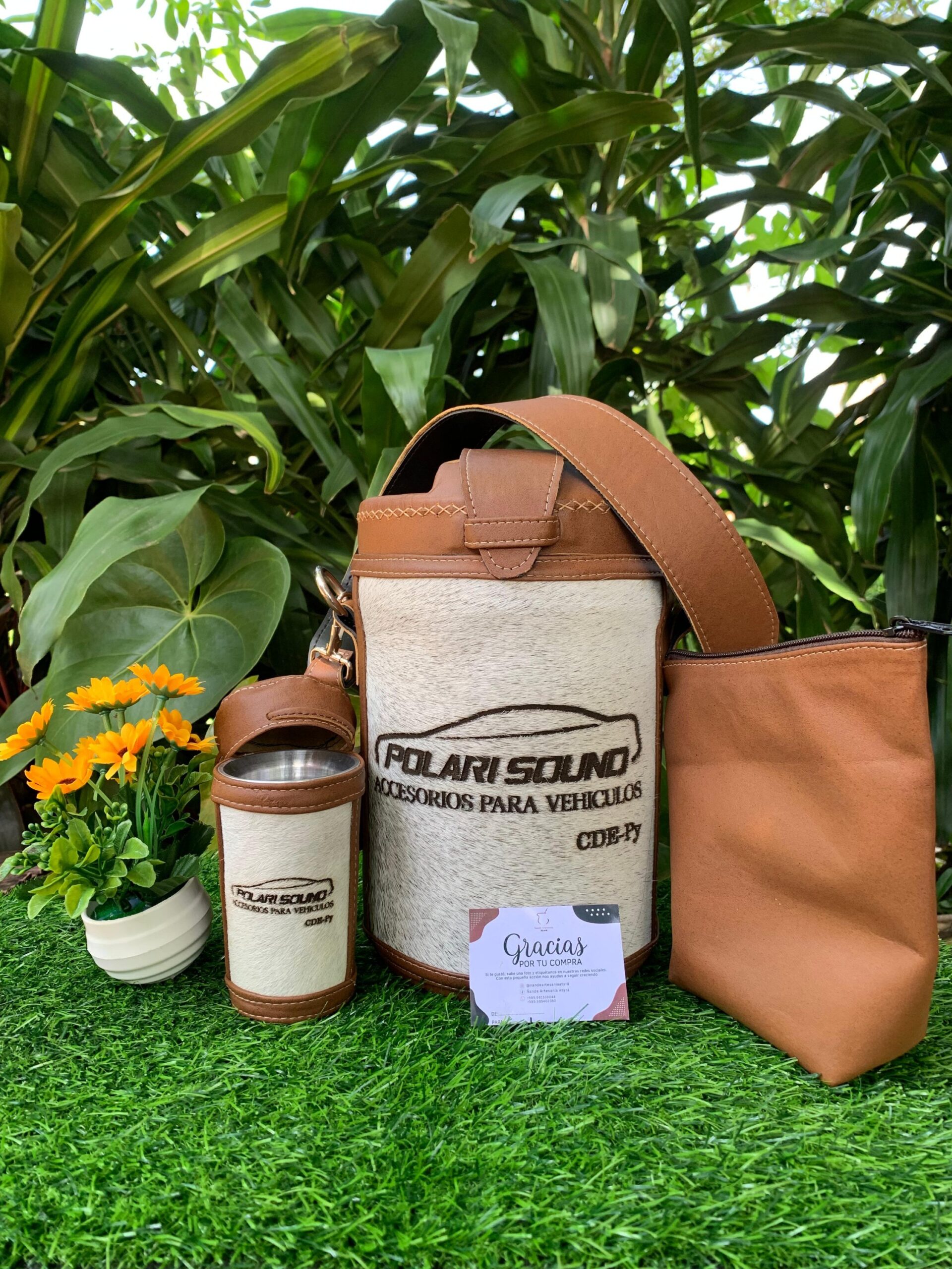 Termolar flip top y guampa , revestido en cuero /personalizado en grabado
