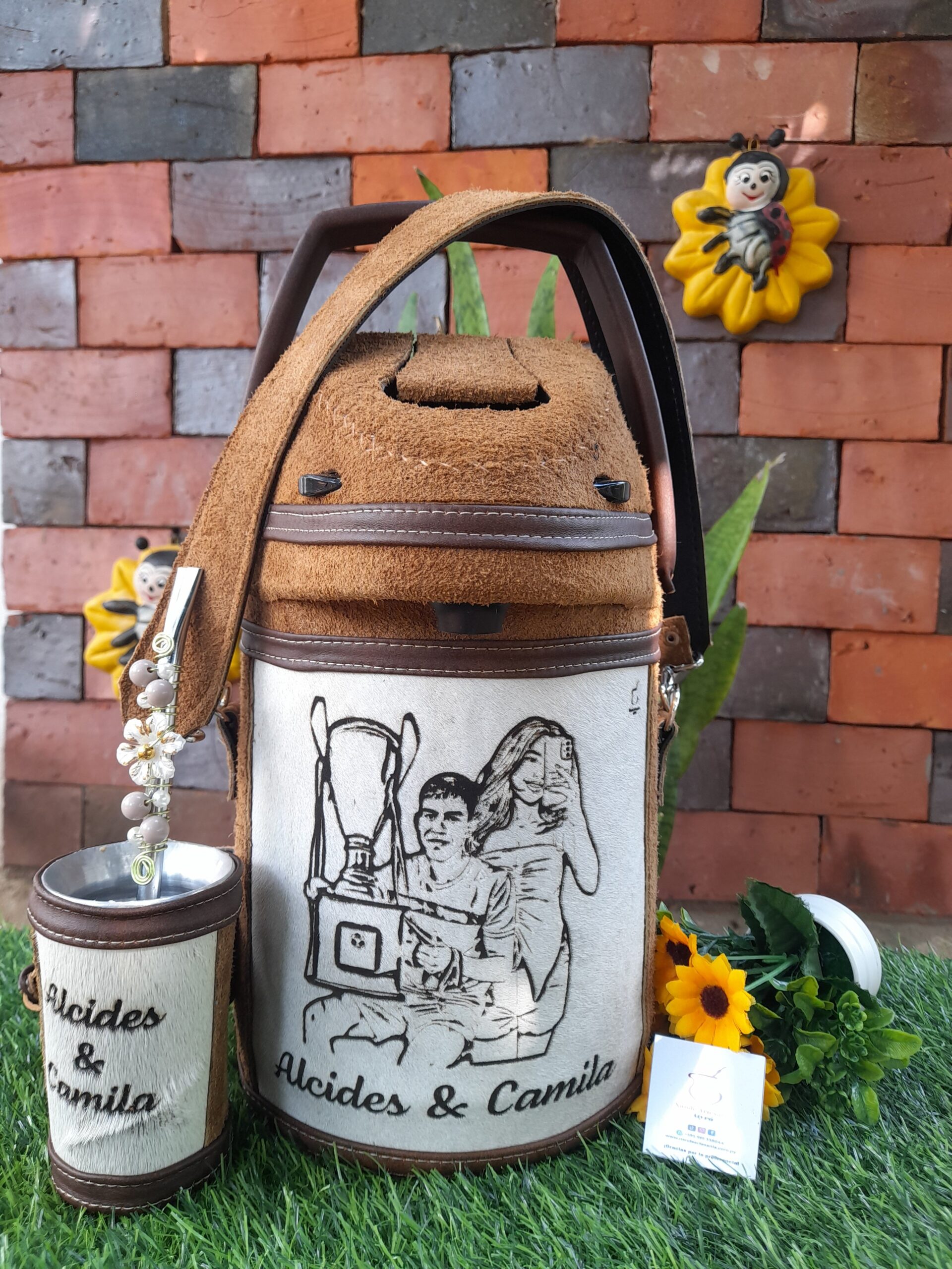 Revestido en cuero /personalizado en grabado y bordado